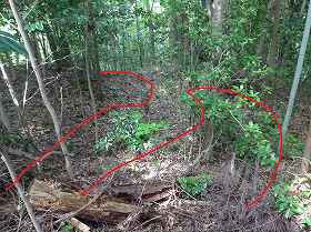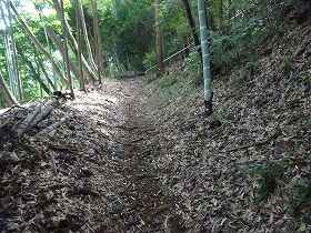 | 堀切5。 | 堀切5の所から1郭に向かう通路。 |