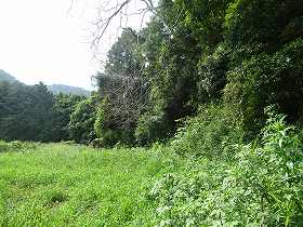 | この尾根の側面部の竪堀だが、自然地形のようにも見える。 | 西側尾根の先端部。 |