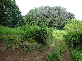 | 北側の土塁の切れの先にテラス状の小郭がある。 | 1郭東側の城塁に道が付けられている。 |