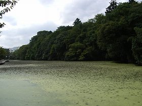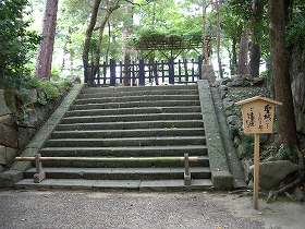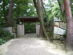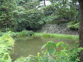 | 城内の水堀。現在は万祥池と呼ばれている。 | 万祥殿で御祓いを受けた後、城内の中枢部へ。 |