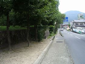 JRの亀岡駅を降りると、改札正面にすぐこんもりとした岡が見えているので城址の場所はすぐに分かる。駅からは直線で500mほどである南に進んでいくと、すぐに城の北側の堀部分に突き当たる。幅の広い堀で、もともと沼か何かがあったのであろう。ここから左側に回りこんだところに城の入口がある。