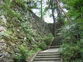 それはともかくとして、この大本教の弾圧は実に徹底したもので、城内にあった宗教関連施設を破壊しまくっただけではなく、ダイナマイトによって石垣までことごとく壊してしまったのだという。その後、信者たちが石を積み、石垣を復元させたということであるが、なにぶん、素人の手による復元だったので、現在見られる石垣は往時のものとはかなり様相を異にしているということである。そのように考えてみると、亀山城を破壊したのは宗教団体ではなく、国家そのものであったということになる。国家的事業としてこんな風に破壊されてしまった城というのも珍しい。それにしても、それほどの弾圧に耐えて石垣の復元までしてしまった信者たちのパワーというのはものすごいものである。「信者たちはかなり迫害されたが、そのように迫害されることで、信仰心はかえって熱く燃え上がったそうでう」というお話を聞いて、「恋だって障害があるほど燃え上がりますもんね」と言ったら、「上手なたとえですね」と言われた。障害がエキスになることもあるのだろう。