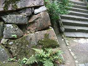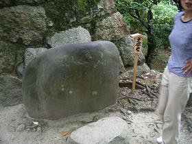 | 本丸内部は霊域となって立ち入り禁止となっている。 | 本丸入口の近くにある霊石。さわると子宝に恵まれるらしい。 |