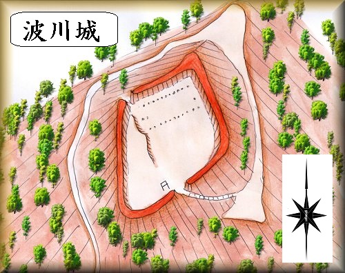 | 波川城は天正元年(1573)頃に、波川玄蕃頭清宗によって築かれたという。そのため波川玄蕃城と呼ばれている。 波川玄蕃は長宗我部氏に降伏して重臣となり、元親の妹を妻に迎えるなど厚遇された。 幡多郡の一条氏が滅亡した後は幡多郡山路城主となって移って行った。 長宗我部軍の伊予侵攻の際、波川玄蕃は大洲に軍勢を進めていたが、河野氏の援軍としてやってきた小早川隆景と勝手に和睦を結んで引き上げたため、長宗我部元親の怒りを買って、山路城を没収され波川城へ戻されることとなった。 このことを恨んでいたのであろうか、天正8年(1580)、波川玄蕃は長宗我部氏に対する謀叛を企てたが発覚し、阿波国へ逃れようとしたところ、阿波国海部で掴まって自刃させられた。 波川城もこれ以降、廃城となったものであろう。 |