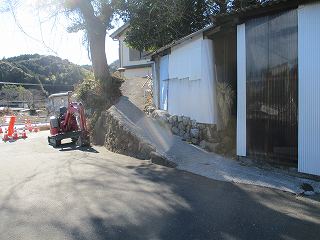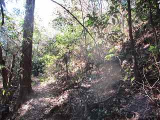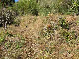 | そのままずっと登って行くと民家の敷地に入ってしまうので、その手前で民家の脇を透って左側の土手に回り込んで行く。 | すぐに段々の地形が見えてくるが、後世の耕作地の跡であろうか。 |
