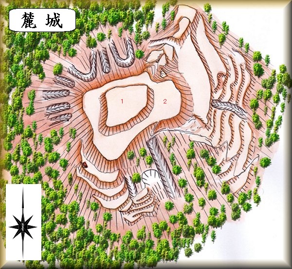 1郭が城内で最大の郭であり、長軸50mほどはある。また東側には土塁を設けて、堀切の深さを大きくしている。1郭背後の堀切は深く鋭く、とても降りていくことはできなかった。