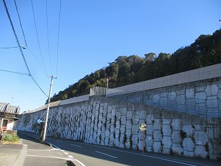 | 北側の高知西バイパスの下から遠望する音竹城。ここからの比高は70mほどある。 | バイパスのトンネルをくぐって南側に抜けていく。 |