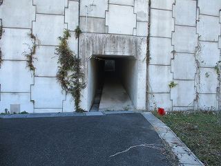 そこから西側に100mほど歩くと、スポーツジムの駐車場の脇にバイパスの下をくぐって行くトンネルが見えてくるので、これを進んで行く。