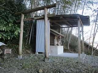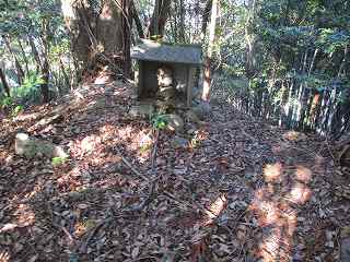 | 1郭の枡形状の虎口。 | 1郭土塁の上に祭られている祠。 |