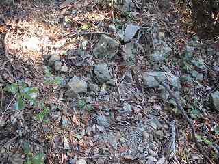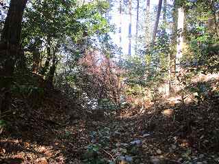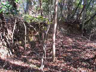| 所々に石積みの跡が見られる。 | 2郭手前の二重堀切の一重目。 |