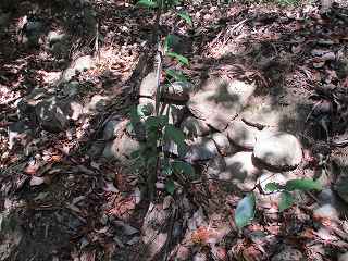 | 2郭下の通路から2郭に登って行く。 | 2郭坂虎口の入口に見られる石積み。 |