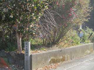 県道51号線を進んで行くと、この場所の道路脇に「尼ケ森城跡」と刻まれた城址入口を示す石碑が建てられている。