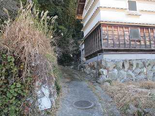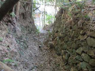 おそらくこの通路からも登ってくることができるのだと思われるが、こちらの登り口は確認していない。おそらく下の民家の敷地内から通じているのであろう。