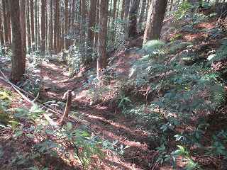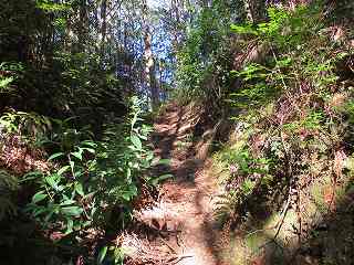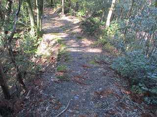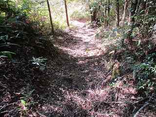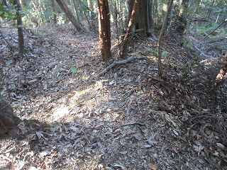 道はやがて山道となって続いていく。それをそのまま東の端辺りまで進んで行くと、左側の山稜上に登って行く道が見えてくる。これを登って行く。