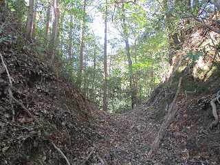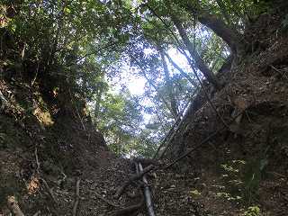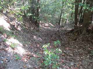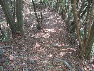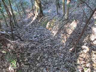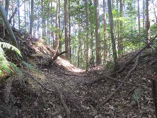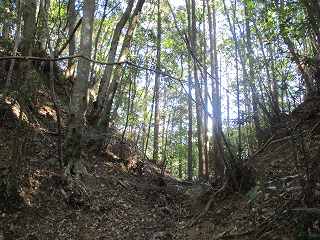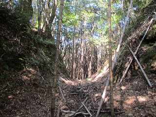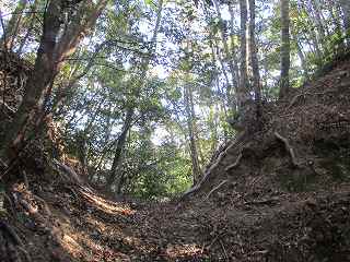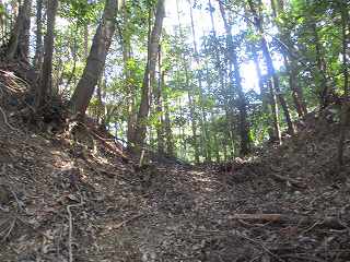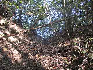 | 7郭との間の堀切。 | 5,6郭の間の堀切から落ちていく竪堀。 |