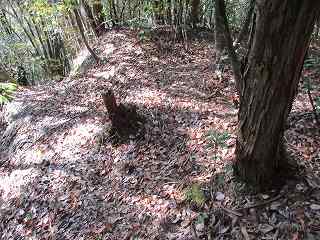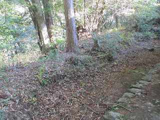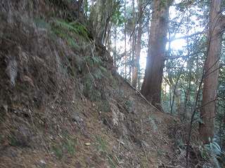 | 1郭虎口側面部の石積み跡。 | 2郭縁部の竪堀。 |