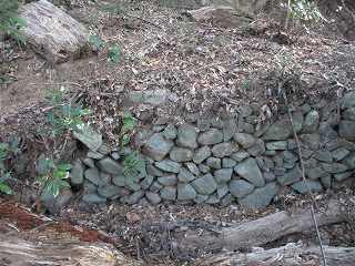 | 1郭土塁内側の石積み。 | これも1郭土塁の石積み。 |