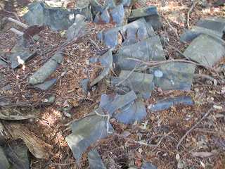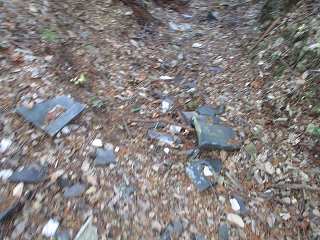 | 1郭櫓台の石積み。 | 1郭に散乱している瓦。遺構なのだろうか。 |
