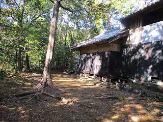 | それを知らずにまっすぐ進んで行ったら、仁井田神社に出てしまった。この背後をよじ登っても、すぐに城内に到達する。 | 神社の背後の登城道をよじ登ったら、本来の登城道と合流した。 |
