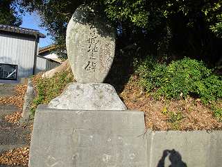 | 1郭の土塁上に祭られている祠。 | 1郭にある城址碑。 |