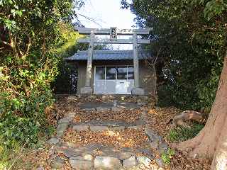 おそらくこの場所が、車で訪れる際の神社参道として利用されている場所なのであろう。案内板の南東側100mほどの所にはかなり広い駐車スペースがある。これが神社の駐車場だと思うので、ここに車を停めて、案内板のところまで歩いて行くとよい。