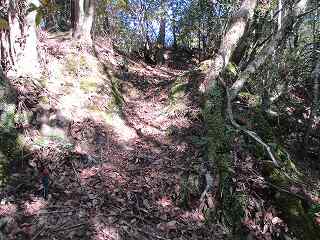 二重目の堀切は一重目ほどは大きくはないが、これによって尾根続きを分断している。