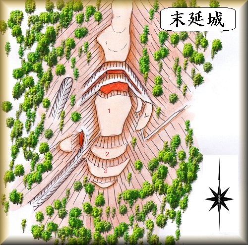 | 末延城の城主は、当地の豪族であった末延氏であり、末延右兵衛、末延治部、末延小太郎らの名前が記録に残されている。 | |