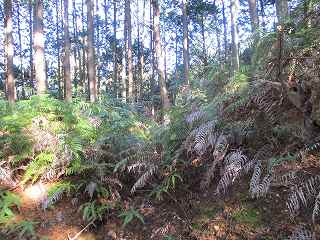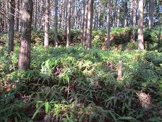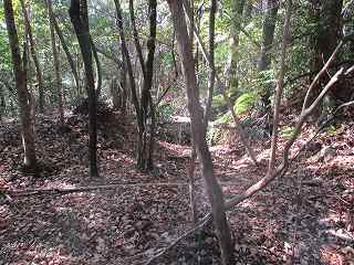 | 登って行くと墓地跡の平場がある。この辺りからが郭であろうか。 | 2郭の入口。 |