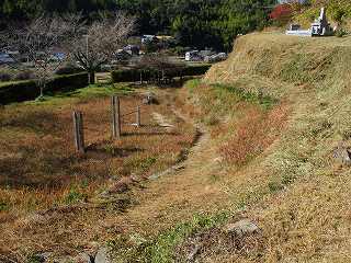 | 1郭虎口から見た2郭。馬出のような機能を有していただろう。 | 1郭の坂虎口。 |