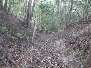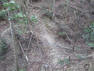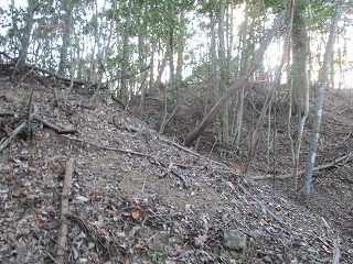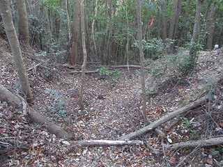 | 登って行くと1郭背後の三重堀切の所に出る。 | 堀切。 |