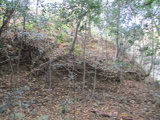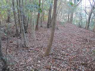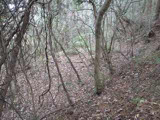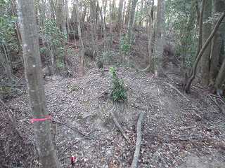 | 堀切から続く竪堀。 | 1郭内部。 |