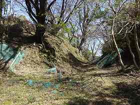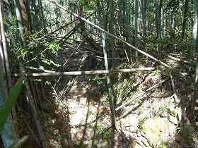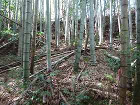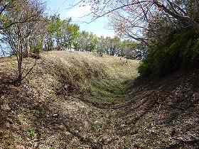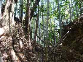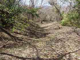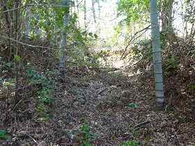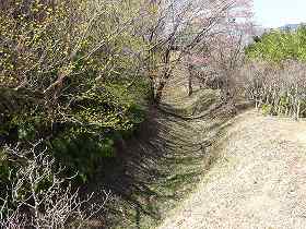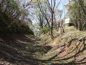 | 詰と二の段との間の堀切。 | 堀切は横堀となって延びている。 |