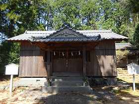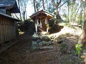 | 石段の脇から見る2の段。 | 神社背後の土塁は、神社にともなって形成されたもののようである。 |
