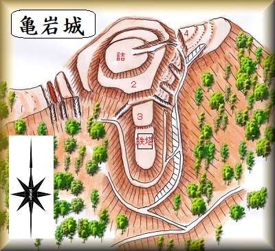 亀岩城は、坂本城と規模はほぼ同じであるが、坂本城よりもやや技巧的な構造をした城郭である。