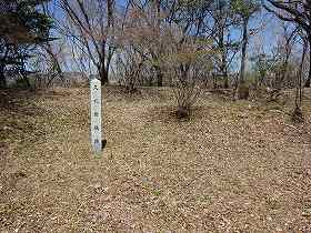| 詰の段。土塁が巡らされている。 | 詰の段にある城址碑。 |