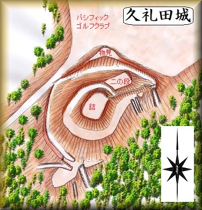 パシフィックゴルフクラブのある比高130mの山稜が久礼田城の跡である。ゴルフ場が建設されると、遺構も破壊されてしまう場合が多いのだが、ここは遺構を破壊しないようにゴルフ場が建設されている。実に良心的なゴルフ場である。