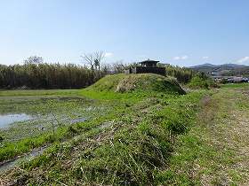 | 北西側の土塁。 | 北側から南側の土塁方向を見たところ。 |
