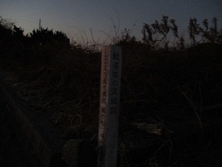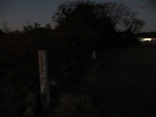 | 蚊居田土居城の標柱。夜明け前でまだ暗い。 | 北側の城塁。 |