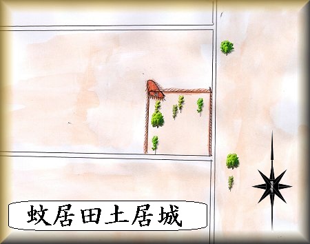 | 蚊居田土居城の城主は蚊居田氏(改田氏)だった。蚊居田氏は長宗我部兼序の妹を娶っており、早い時代から長宗我部氏に帰属していた。 戦国時代、長宗我部元親の時代の当主は蚊居田修理であった。彼は後に浦戸で奉行として活躍したという。 |