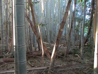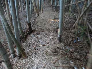 | 尾根に登った所でさらに案内があり、親切。 | 2郭下に接続する土橋状尾根。 |