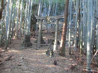 | 2郭の城塁。 | 2郭から見る八幡宮の鳥居。 |