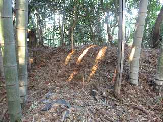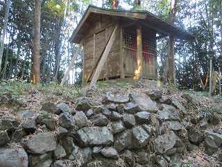 | 1郭に祭られている八幡宮。 | 1郭の土塁。 |