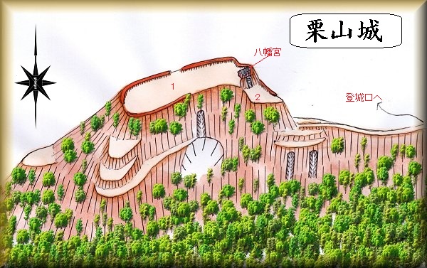 | 栗山城の城主は細川氏であった。細川氏は室町幕府の管領家である細川氏の一族であった。 細川氏は天文18年(1549)頃、長宗我部国親に降伏し、以後は長宗我部氏の重臣となって十市氏を名乗った。 永禄年間の長宗我部氏と本山氏の抗争において十市氏は、神田南城を築いて、朝倉城の本山氏を攻撃し、朝倉城を落城させた。長宗我部家臣の中でも功臣というべき存在であった。 長宗我部氏の一条氏攻撃の後に十市宗桃は、宿毛の鶴ヶ城に入城して、後の伊予攻めに備えた。 宗桃が鶴ヶ城に入城した後、栗山城の城主は長子の備前守となった。また次子の豊前守頼定は池城主となった。 |