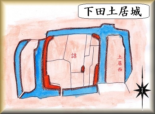 下田土居城の城主は下田氏である。下田氏は平素はこの土居城に居住し、詰の城として、いざという時のために蛸の森城を用意していた。
