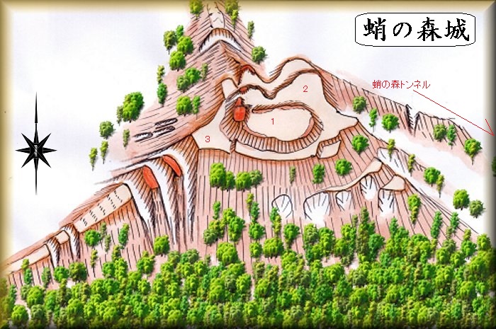 蛸の森城の入口は、蛸の森トンネルの南側にある。道路の東側には駐車できるスペースがあり、西側から山に入り込んで行く道を通って城内まで行けるらしい。