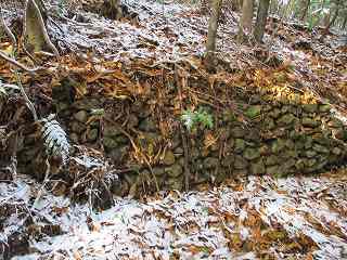 | 6郭。土塁の内側に石積みがある。 | 石積み。 |