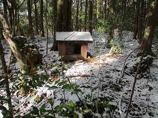 | 3郭に祭られている祠。 | 3郭南端部の堀切は埋められているが、側面部の竪堀は残っている。 |