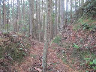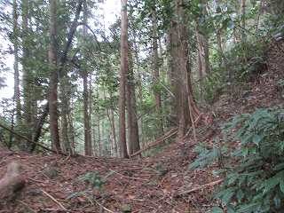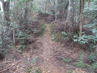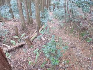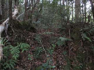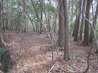 | 郭と通路。 | この尾根の先には墓地がある。 |