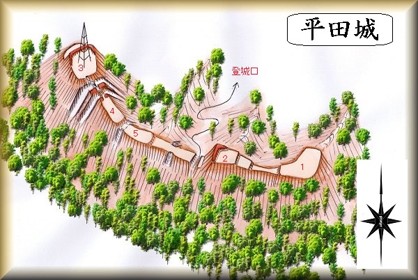 平田城は規模の大きな城ではないが、切岸構造はしっかりとしており、なかなかの要害であったと考えられる。