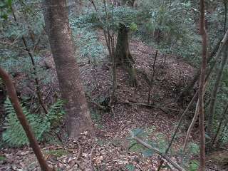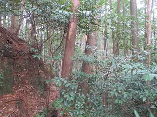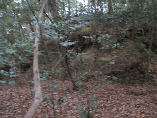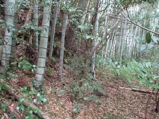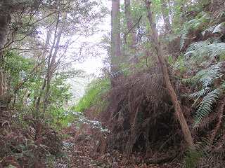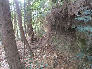 | 椎の木城手前の堀切。 | 城塁側面部。 |